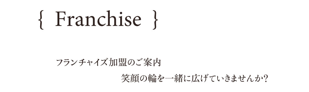 フランチャイズ契約を結び本部と加盟店になりますが 加盟店とした関係以上に、共に成長し考案し収益化を目指す 運命共同体であってほしいと願っております。 |
